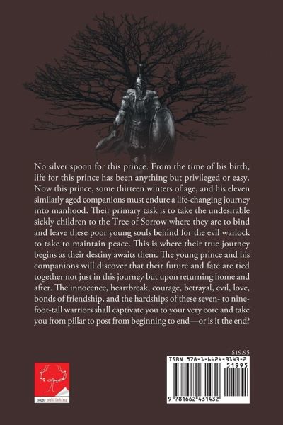 No silver spoon for this prince. From the time of his birth, life for this prince has been anything but privileged or easy. Now this prince, some thirteen winters of age, and his eleven similarly aged companions must endure a life-changing journey into manhood. Their primary task is to take the undesirable sickly children to the Tree of Sorrow where they are to bind and leave these poor young souls behind for the evil warlock to take to maintain peace. This is where their true journey begins as their destiny awaits them. The young prince and his companions will discover that their future and fate are tied together not just in this journey but upon returning home and after. The innocence, heartbreak, courage, betrayal, evil, love, bonds of friendship, and the hardships of these seven- to nine-foot-tall warriors shall captivate you to your very core and take you from pillar to post from beginning to endor is it the end?