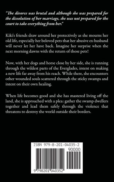 "The divorce was brutal and although she was prepared for the dissolution of her marriage, she was not prepared for the court to take everything from her." Kiki's friends draw around her protectively as she mourns her old life, especially her beloved pets that her abusive ex-husband will never let her have back. Imagine her surprise when the next morning dawns with the return of those pets! Now, with her dogs and horse close by her side, she is running through the wildest parts of the Everglades, intent on making a new life far away from his reach. While there, she encounters other wounded souls scattered through the sticky swamps and intent on their own healing. When life becomes good and she has mastered living off the land, she is approached with a plea: gather the swamp dwellers together and lead them safely through the violence that threatens to destroy the world outside their borders.