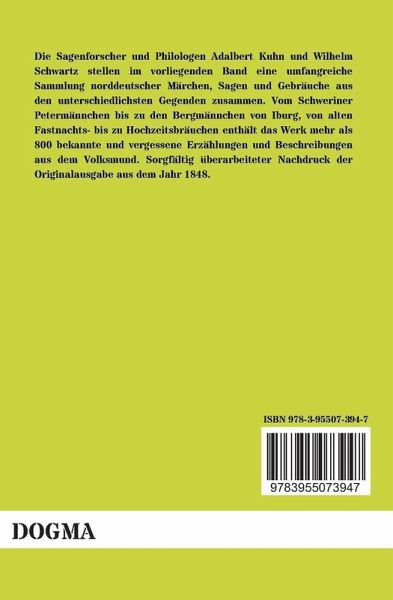 Die Sagenforscher und Philologen Adalbert Kuhn und Wilhelm Schwartz stellen im vorliegenden Band eine umfangreiche Sammlung norddeutscher Märchen, Sagen und Gebräuche aus den unterschiedlichsten Gegenden zusammen. Vom Schweriner Petermännchen bis zu den Bergmännchen von Iburg, von alten Fastnachts- bis zu Hochzeitsbräuchen enthält das Werk mehr als 800 bekannte und vergessene Erzählungen und Beschreibungen aus dem Volksmund. Sorgfältig überarbeiteter Nachdruck der Originalausgabe aus dem Jahr 1848.