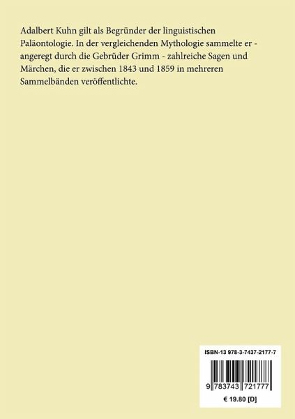 Adalbert Kuhn gilt als Begründer der linguistischen Paläontologie. In der vergleichenden Mythologie sammelte er - angeregt durch die Gebrüder Grimm - zahlreiche Sagen und Märchen, die er zwischen 1843 und 1859 in mehreren Sammelbänden veröffentlichte.