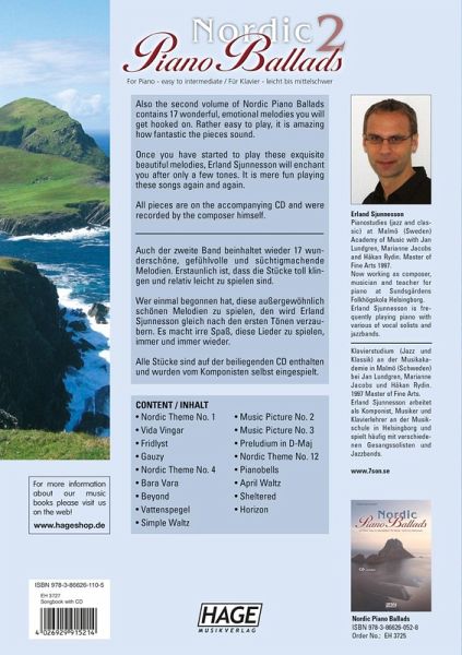 Wer einmal begonnen hat, diese außergewöhnlich schönen Melodien zu spielen, den wird Erland Sjunnesson gleich nach den ersten Tönen verzaubern. Es macht irre Spaß, diese Lieder zu spielen, immer und immer wieder. Alle Stücke sind auf der beiliegenden CD enthalten und wurden vom Komponisten selbst eingespielt.