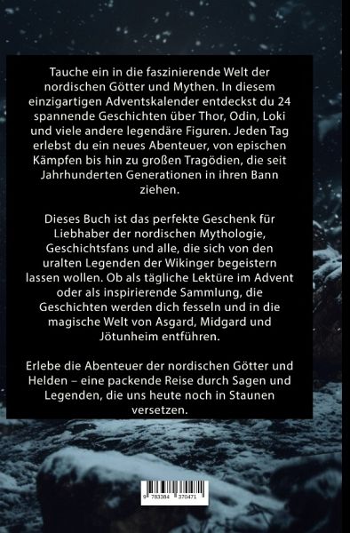 Nordische Mythologie Adventskalender: 24 packende Geschichten voller Götter, Helden und Legenden - Das perfekte Geschenk für Liebhaber nordischer MythenSuchst du nach einem besonderen Adventskalender für die Weihnachtszeit? Bist du ein Fan der nordischen Mythologie oder kennst jemanden, der von Göttern wie Odin, Thor und Loki fasziniert ist? Dann ist dieses Buch genau das Richtige für dich!In diesem Nordischen Mythologie Adventskalender erwarten dich 24 spannende Geschichten, die die Legenden und Abenteuer der Wikinger zum Leben erwecken. Entdecke die Geheimnisse der nordischen Götter, erlebe epische Kämpfe und lerne die Helden und Schurken aus den uralten Sagen kennen.Jeden Tag öffnet sich eine neue Welt voller Abenteuer:- Thor und die Midgardschlange- Die Weisheit Odins- Lokis schicksalhafte Täuschungen- Ragnarök und die Wiedergeburt der WeltDieses Buch ist das perfekte Geschenk für Liebhaber nordischer Mythen, Geschichtsfreunde und Fans von Fantasy. Ob als täglicher Begleiter im Advent oder als faszinierende Sammlung für lange Winterabende - die Geschichten werden dich in ihren Bann ziehen!Warum dieses Buch?Ideales Geschenk für Weihnachten: Ein einzigartiger Adventskalender in Buchform.- 24 packende Geschichten: Perfekt für Fans der nordischen Mythologie und Wikinger-Sagen.- Großartig zum Vorlesen: Ideal für Leser jeden Alters.- Tauche ein in die magische Welt der nordischen Götter und Mythen - ein unverzichtbares Buch für alle, die die Legenden des Nordens lieben!