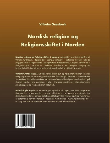 Nordisk religion og Religionsskiftet i Norden indeholder to mindre skrifter af Vilhelm Grønbech. I første del - Nordisk religion - skitseres, hvilken rolle de religiøse forestillinger havde i vikingetidens ættesamfund. I anden del - Religionsskiftet i Norden - beskriver Grønbech den særegne overgang fra hedenskab til kristendom, som kendetegnede religionsskiftet i Norden.