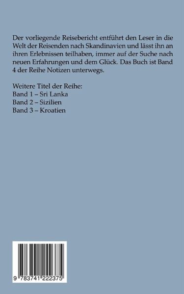 Der vorliegende Reisebericht entführt den Leser in die Welt der Reisenden nach Skandinavien und lässt ihn an ihren Erlebnissen teilhaben, immer auf der Suche nach neuen Erfahrungen und dem Glück.Band 4 ist in der Reihe Notizen unterwegs.Band 1 - Sri LankaBand 2 - SizilienBand 3 - Kroatien