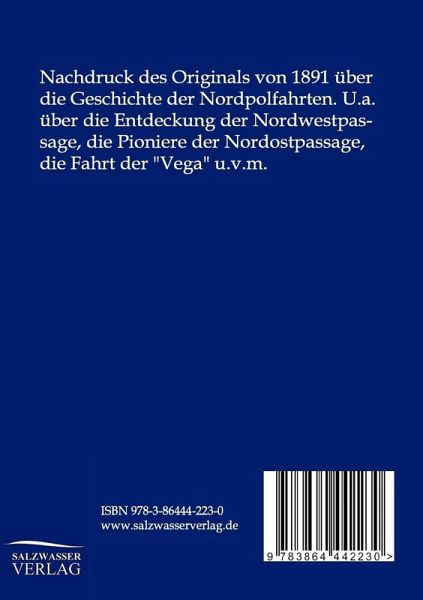 Nachdruck des Originals von 1891 über die Geschichte der Nordpolfahrten. U.a. über die Entdeckung der Nordwestpassage, die Pioniere der Nordostpassage, die Fahrt der "Vega" u.v.m.