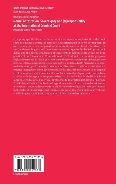Grappling specifically with the norm of sovereignty as responsibility, the book seeks to advance a critical constructivist understanding of norm development in international society, as opposed to the conventional - or liberal - constructivist (mis)understanding that still dominates the debate. Against this backdrop, the book delves into the institutionalization of sovereignty as responsibility within the lived practice of the International Criminal Court (ICC). More to the point, the proposed exploration intends to revive questions about the power-laden nature of the normative fabric of international society, its dis-symmetries, and its outright hierarchies, in order to devise an original framework to operationalize research on how - institutional - practice impinges on norm development. To this end, the book resorts to an original creole vocabulary, which combines the contributions of post-positivist constructivist scholars with the legacy of key post-modernist thinkers such as Michel Foucault and Jacques Derrida, as well as critical approaches to International (Criminal) Law and Post-Colonial Studies. The book will appeal to scholars of international relations and international law, in addition to critical scholars more broadly, as well as to practitioners in the fields of human rights and international justice interested in normative theory and the implementation and contestation of international social norms.