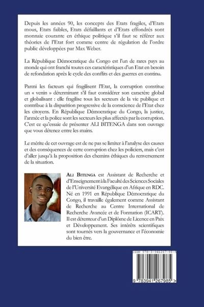 Parmi les facteurs qui fragilisent l'Etat, la corruption constitue un " venin " déterminant s'il faut considérer son caractère global et globalisant : elle fragilise tous les secteurs de la vie publique et contribue à la disparition progressive de la conscience de l'Etat chez les Citoyen. En République Démocratique du Congo, la justice, l'armée et la police sont les secteurs les plus affectés par la corruption. C'est ce qu'essaie de présenter ALI BITENGA dans son ouvrage que vous détenez entre les mains.