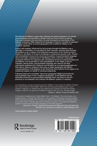 Normalizing the Balkans argues that, following the historical patterns of colonial psychoanalysis and psychiatry in British India and French Africa as well as Nazi psychoanalysis and psychiatry, the psychoanalysis and psychiatry of the Balkans during the 1990s deployed the language of psychic normality to represent the space of the Other as insane geography and to justify its military, or its symbolic, takeover. Following Gramsci's and Said's discourse-geography? Bjelic transmutes the psychoanalytic topos of the imaginary geography? of the Balkans into the geopolitics inherent in psychoanalytic language itself, and takes to task the practices of normalization that underpin the Balkans' politics of madness.