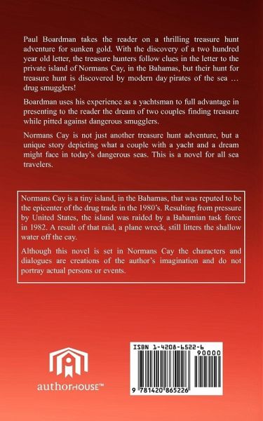 Paul Boardman takes the reader on a thrilling treasure hunt adventure for sunken gold. With the discovery of a two hundred year old letter, the treasure hunters follow clues in the letter to the private island of Normans Cay, in the Bahamas, but their hunt for treasure hunt is discovered by modern day pirates of the sea . drug smugglers! Boardman uses his experience as a yachtsman to full advantage in presenting to the reader the dream of two couples finding treasure while pitted against dangerous smugglers. Normans Cay is not just another treasure hunt adventure, but a unique story depicting what a couple with a yacht and a dream might face in today's dangerous seas. This is a novel for all sea travelers. Disclaimer Normans Cay is a tiny island, in the Bahamas, that was reputed to be the epicenter of the drug trade in the 1980''s. Resulting from pressure by United States, the island was raided by a Bahamian task force in 1982. A result of that raid, a plane wreck, still litters the shallow water off the cay. Although this novel is set in Normans Cay the characters and dialogues are creations of the author''s imagination and do not portray actual persons or events.