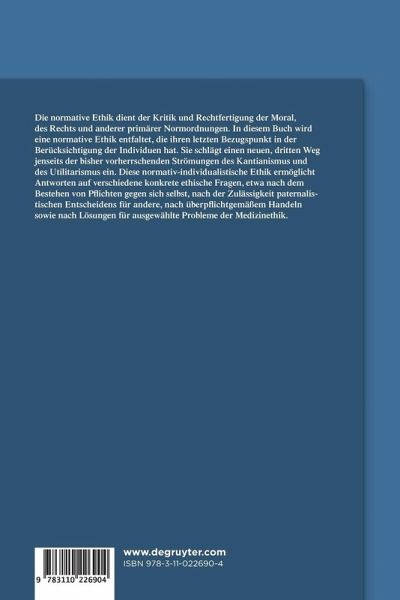 In dem Buch wird ein neuer, dritter Weg in der normativen Ethik jenseits der beiden großen Hauptströmungen des Kantianismus bzw. der Deontologie auf der einen Seite und des Utilitarismus bzw. Konsequentialismus auf der anderen Seite vorgeschlagen. Zu einer begründeten normativen Ethik sind - so die zentrale inhaltliche These der Untersuchung - fünf Elemente erforderlich: erstens die einzelnen Menschen bzw. Lebewesen als Ausgangspunkt, zweitens ihre Ziele, Wünsche, Bedürfnisse und Strebungen, also ihre Belange, drittens der Bezug dieser Belange auf alle Handlungsteile im weiteren Sinn, nicht nur auf einzelne wie den guten Willen oder die Konsequenzen der Handlung, viertens die Notwendigkeit einer Abwägung, schließlich fünftens als Kriterium der Abwägung: die mehr oder minder große Abhängigkeit bzw. Unabhängigkeit der Belange aller Betroffenen von den Anderen bzw. der Gemeinschaft. Die Entfaltung dieser fünf Elemente einer adäquaten normativen Ethik ermöglicht Antworten auf konkretere ethische Fragen, etwa nach dem Bestehen von Pflichten gegen sich selbst, nach der Zulässigkeit paternalistischen Entscheidens für Andere sowie nach der Beurteilung überpflichtgemäßen Handelns sowie einzelner Probleme der Medizinethik.