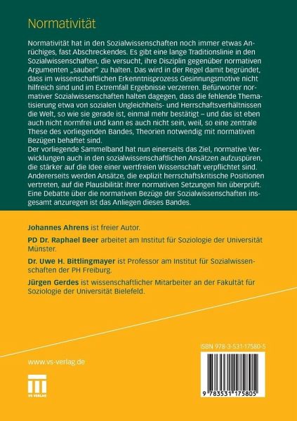 Normativität hat in den Sozialwissenschaften noch immer etwas Anrüchiges, fast Abschreckendes. Befürworter normativer Sozialwissenschaften halten den Verteidigern einer wertfreien Wissenschaft entgegen, dass die fehlende Thematisierung etwa von sozialen Ungleichheits- und Herrschaftsverhältnissen die Welt, so wie sie gerade ist, einmal mehr bestätigt - und das ist eben auch nicht normfrei und kann es auch nicht sein, weil, so eine zentrale These des vorliegenden Bandes, Theorien notwendig mit normativen Bezügen behaftet sind.