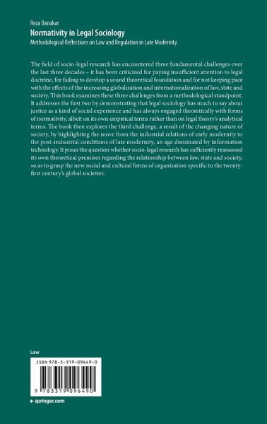 The field of socio-legal research has encountered three fundamental challenges over the last three decades - it has been criticized for paying insufficient attention to legal doctrine, for failing to develop a sound theoretical foundation and for not keeping pace with the effects of the increasing globalization and internationalization of law, state and society. This book examines these three challenges from a methodological standpoint. It addresses the first two by demonstrating that legal sociology has much to say about justice as a kind of social experience and has always engaged theoretically with forms of normativity, albeit on its own empirical terms rather than on legal theory's analytical terms. The book then explores the third challenge, a result of the changing nature of society, by highlighting the move from the industrial relations of early modernity to the post-industrial conditions of late modernity, an age dominated by information technology. It poses the question whether socio-legal research has sufficiently reassessed its own theoretical premises regarding the relationship between law, state and society, so as to grasp the new social and cultural forms of organization specific to the twenty-first century's global societies.