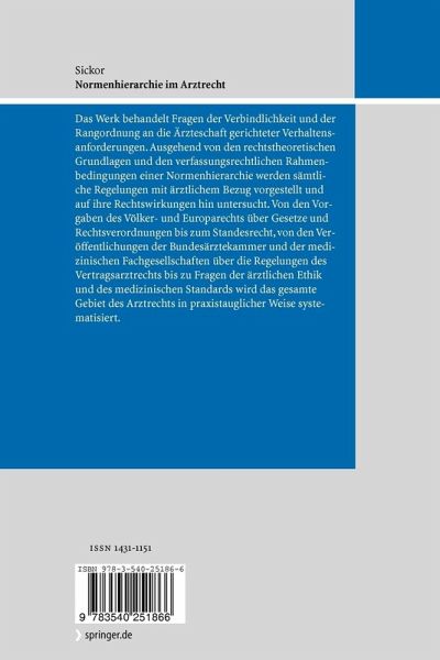 Das Werk behandelt Fragen der Verbindlichkeit und der Rangordnung an die Ärzteschaft gerichteter Verhaltensanforderungen. Ausgehend von den rechtstheoretischen Grundlagen und den verfassungsrechtlichen Rahmenbedingungen einer Normenhierarchie werden sämtliche Regelungen mit ärztlichem Bezug vorgestellt und auf ihre Rechtswirkungen hin untersucht. Von den Vorgaben des Völker- und Europarechts über Gesetze und Rechtsverordnungen bis zum Standesrecht, von den Veröffentlichungen der Bundesärztekammer und der medizinischen Fachgesellschaften über die Regelungen des Vertragsarztrechts bis zu Fragen der ärztlichen Ethik und des medizinischen Standards wird das gesamte Gebiet des Arztrechts in praxistauglicher Weise systematisiert.