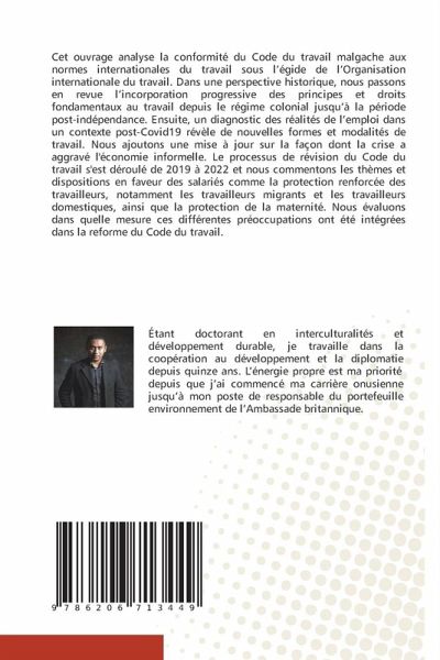 Cet ouvrage analyse la conformité du Code du travail malgache aux normes internationales du travail sous l'égide de l'Organisation internationale du travail. Dans une perspective historique, nous passons en revue l'incorporation progressive des principes et droits fondamentaux au travail depuis le régime colonial jusqu'à la période post-indépendance. Ensuite, un diagnostic des réalités de l'emploi dans un contexte post-Covid19 révèle de nouvelles formes et modalités de travail. Nous ajoutons une mise à jour sur la façon dont la crise a aggravé l'économie informelle. Le processus de révision du Code du travail s'est déroulé de 2019 à 2022 et nous commentons les thèmes et dispositions en faveur des salariés comme la protection renforcée des travailleurs, notamment les travailleurs migrants et les travailleurs domestiques, ainsi que la protection de la maternité. Nous évaluons dans quelle mesure ces différentes préoccupations ont été intégrées dans la reforme du Code du travail.