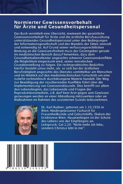 Das Buch vermittelt eine Übersicht, inwieweit der gesetzliche Gewissensvorbehalt für Ärzte und die ärztliche Berufsausübung unterstützendes Gesundheitspersonal unter den Bedingungen der Informationsgesellschaft und des Wandels der Sitten sinnvoll und notwendig ist. Auf Grund seiner verfassungsrechtlichen Bindung an die Gewissensfreiheit muss der Gesetzgeber gerade im medizinischen Bereich darauf hinwirken, dass dem Gesundheitsdienstleister angesichts schwerer Gewissenskonflikte die Möglichkeit eingeräumt wird, seiner moralischen Grundeinstellung zu folgen. Ein rechtspraktisches Bedürfnis hierfür besteht umso mehr, als es sich bei der ärztlichen Berufstätigkeit angesichts des Dienstes unmittelbar am Menschen und im Hinblick auf den medizintechnischen Fortschritt um eine zutiefst rechtsethisch durchdrungene Materie handelt. Der Weg zur Bewältigung der resultierenden Konflikte führt über die Implementierung von Gewissensklauseln. Dies betrifft vor allem den Lebensbeginn, das Lebensende und Fragen der Reproduktionsmedizin, z.B. darf kein Arzt gegen sein Gewissen gezwungen werden an einer Abtreibung mitzuwirken oder an Maßnahmen im Rahmen des assistierten Suizids teilzunehmen.
