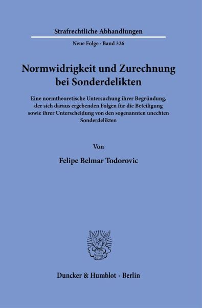 1. Normen als Gründe für Handlungen Verhalten, Handlung und Straftat - Verhaltensnormen und Sanktionsnormen: Normen als Handlungsgründe - Askriptive Regeln: Zurechnung, Pflichtverletzung und Schuld2. Sonderdelikte und SondernormenSonderdelikte als Übertretung von Sondernormen - Paradigmenwechsel: Die Ersetzung des Begriffs der Sonderdelikte für die Einordnung der besonderen persönlichen Merkmale - Pflichtdeliktslehren: Die Verletzung einer Sonderpflicht als täterschaftsbegründendes Kriterium - Die relative Modifizierung des Unrechts wegen der Ausübung einer Sonderrolle - Schlussbemerkungen über die Begründung der Sonderdelikte und den Anwendungsbereich des 28 StGB3. Die Zurechnung der SonderdelikteTäterschaft und Sonderdelikte - Teilnahme und Sonderdelikte - Die Auslegung des 28 Abs. 1 StGB: Begründung, Lockerung oder Strafzumessung4. Die sogenannten unechten SonderdelikteDie theoretische Einordnung der unechten Sonderdelikte: Sonderdelikte oder Qualifikationen von Gemeindelikten? - Die Folgen der Einordnung der unechten Sonderdelikte als Qualifikationen im Allgemeinen - Die Folgen der Einordnung der unechten Sonderdelikte als Qualifikationen im Besonderen: Die Auslegung des 28 Abs. 2 StGB - Das delictum sui generis und dessen Auswirkungen auf die Unterscheidung zwischen unechten und echten Sonderdelikten