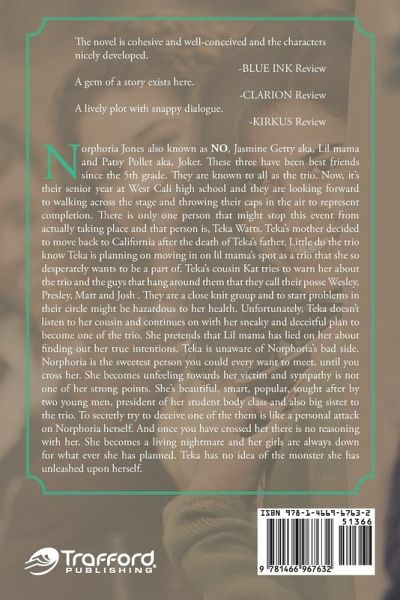 Norphoria Jones also known as NO, Jasmine Getty aka, Lil mama and Patsy Pollet aka, Joker. These three have been best friends since the 5th grade. They are known to all as the trio. Now, it's their senior year at West Cali high school and they are looking forward to walking across the stage and throwing their caps in the air to represent completion. There is only one person that might stop this event from actually taking place and that person is, Teka Watts. Teka's mother decided to move back to California after the death of Teka's father. Little do the trio know Teka is planning on moving in on lil mama's spot as a trio that she so desperately wants to be a part of. Teka's cousin Kat tries to warn her about the trio and the guys that hang around them that they call their posse Wesley, Presley, Matt and Josh . They are a close knit group and to start problems in their circle might be hazardous to her health. Unfortunately, Teka doesn't listen to her cousin and continues on with her sneaky and deceitful plan to become one of the trio. She pretends that Lil mama has lied on her about finding out her true intentions. Teka is unaware of Norphoria's bad side. Norphoria is the sweetest person you could every want to meet, until you cross her. She becomes unfeeling towards her victim and sympathy is not one of her strong points. She's beautiful, smart, popular, sought after by two young men, president of her student body class and also big sister to the trio. To secretly try to deceive one of the them is like a personal attack on Norphoria herself. And once you have crossed her there is no reasoning with her. She becomes a living nightmare and her girls are always down for what ever she has planned. Teka has no idea of the monster she has unleashed upon herself.