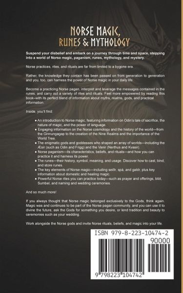 Suspend your disbelief and embark on a journey through time and space, stepping into a world of Norse magic, paganism, runes, mythology, and mystery. Have the Norse runes always mystified you, and would you love to know more about their history, symbolism, and usage? Would you like to harness the power of Norse magic, rites, and rituals and connect with the eternal Norse gods and goddesses? Within this book, you will find: An introduction to Norse magic, featuring information on Odin's tale of sacrifice, the nature of magic, and the power of language. Engaging information on the Norse cosmology and the history of the world. The enigmatic gods and goddesses who shaped an array of worlds. Norse paganism—its characteristics, beliefs, and rituals—and how to practice it and harness its power. The runes—their history, symbol, meaning, and usage. Discover how to cast, bind, and store runes. The key elements of Norse magic—including seiðr, spá, and galdr. Powerful Norse rites you can practice today. And so much more! If you are ready to work alongside the Norse gods and invite Norse rituals, beliefs, and magic into your life, then start reading now!
