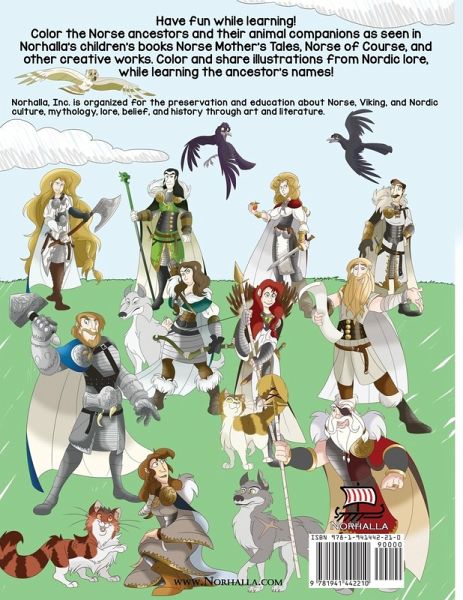 Visit www.Norhalla.com! Have fun while learning! Color the Norse ancestors and their animal companions as seen in Norhalla's children's books Norse Mother's Tales, and Norse of Course, along with other creative works. Color and share illustrations from Nordic lore while learning the ancestor's names. Find fun to read, fully illustrated Norse children's books at Norhalla.com. Follow us on Facebook @Norhalla.