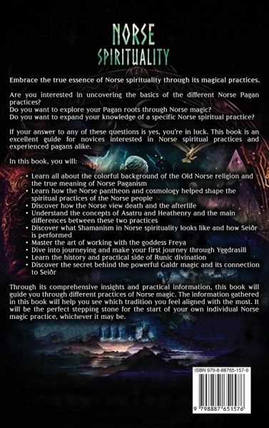 Embrace the true essence of Norse spirituality through its magical practices. Are you interested in uncovering the basics of the different Norse Pagan practices? Do you want to explore your Pagan roots through Norse magic? Do you want to expand your knowledge of a specific Norse spiritual practice? If your answer to any of these questions is yes, you're in luck. This book is an excellent guide for novices interested in Norse spiritual practices and experienced pagans alike. In this book, you will: Learn all about the colorful background of the Old Norse religion and the true meaning of Norse Paganism Learn how the Norse pantheon and cosmology helped shape the spiritual practices of the Norse people Discover how the Norse view death and the afterlife Understand the concepts of Asatru and Heathenry and the main differences between these two practices Discover what Shamanism in Norse spirituality looks like and how Seiðr is performed Master the art of working with the goddess Freya Dive into journeying and make your first journey through Yggdrasill Learn the history and practical side of Runic divination Discover the secret behind the powerful Galdr magic and its connection to Seiðr Through its comprehensive insights and practical information, this book will guide you through different practices of Norse magic. The information gathered in this book will help you see which tradition you feel aligned with the most. It will be the perfect stepping stone for the start of your own individual Norse magic practice, whichever it may be.