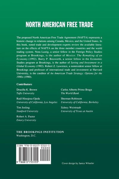 " The proposed North American Free Trade Agreement (NAFTA) represents a historic change in relations among Canada, Mexico, and the United States. The effect of the agreement on the three economies has generated controversy and some degree of alarm within each country. In this book, noted trade and development experts review the available literature on the effects of NAFTA on the three member countries and the world trading system. They evaluate how NAFTA will affect areas such as economic growth, employment, income distribution, industry, and agriculture in Canada, Mexico, and the United States; and consider the significance the trade agreement holds for the rest of the world. Drusill K. Brown begins the discussion by providing an overview and comparison of the general results from recent studies. Raúl Hinojosa-Ojeda and Sherman Robinson explore in greater detail the potential effects of NAFTA on wages and employment in Mexico and the United States. Sidney Wintrab reviews industry-specific effects of NAFTA, in particular, the environment, the social agenda, and human rights and democracy. Finally, Carlos Alberto Primo Braga considers the implications of NAFTA on the rest of the world. Following each of these chapters, international scholars assess the alternatives and provide recommendations for future research."