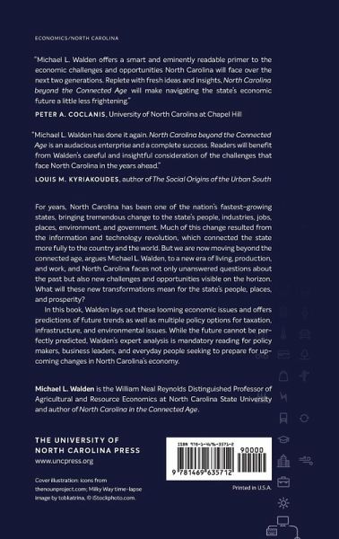 For years, North Carolina has been one of the nation's fastest-growing states, bringing tremendous change to the state's people, industries, jobs, places, environment, and government. Much of this change resulted from the information and technology revolution, which connected the state more fully to the country and the world. But we are now moving beyond the connected age, argues Michael L. Walden, to a new era of living, production, and work, and North Carolina faces not only unanswered questions about the past but also new challenges and opportunities visible on the horizon. What will these new transformations mean for the state's people, places, and prosperity? In this book, Walden lays out these looming economic issues and offers predictions of future trends as well as multiple policy options for taxation, infrastructure, and environmental issues. While the future cannot be perfectly predicted, Walden's expert analysis is mandatory reading for policy makers, business leaders, and everyday people seeking to prepare for upcoming changes in North Carolina's economy.