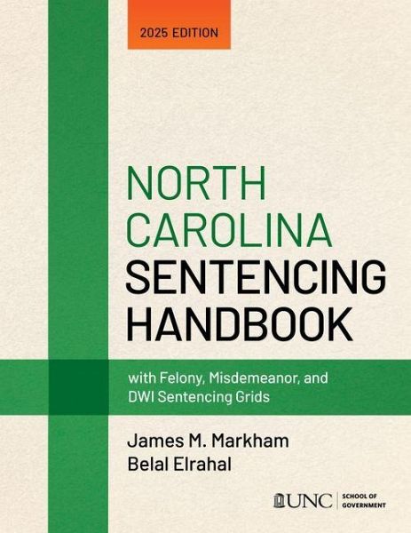The North Carolina Sentencing Handbook is a step-by-step guide to the sentencing of felonies, misdemeanors, and impaired driving offenses in North Carolina. The 2025 edition of the book includes the felony and misdemeanor sentencing grids that apply under Structured Sentencing and a table that shows the different sentencing levels for driving while impaired (DWI) offenses. Other topics addressed in the publication include drug trafficking sentencing, diversion programs (deferred prosecution and conditional discharge), probationary sentences, monetary obligations (fines, restitution, costs and fees), and sex offender registration.