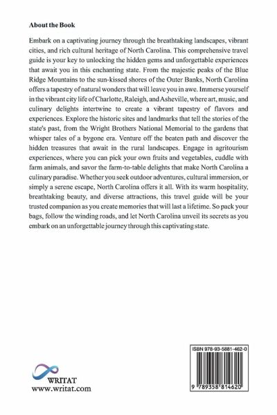 Embark on a captivating journey through the breathtaking landscapes, vibrant cities, and rich cultural heritage of North Carolina. This comprehensive travel guide is your key to unlocking the hidden gems and unforgettable experiences that await you in this enchanting state. From the majestic peaks of the Blue Ridge Mountains to the sun-kissed shores of the Outer Banks, North Carolina offers a tapestry of natural wonders that will leave you in awe. Immerse yourself in the vibrant city life of Charlotte, Raleigh, and Asheville, where art, music, and culinary delights intertwine to create a vibrant tapestry of flavors and experiences. Explore the historic sites and landmarks that tell the stories of the state's past, from the Wright Brothers National Memorial to the gardens that whisper tales of a bygone era. Venture off the beaten path and discover the hidden treasures that await in the rural landscapes. Engage in agritourism experiences, where you can pick your own fruits and vegetables, cuddle with farm animals, and savor the farm-to-table delights that make North Carolina a culinary paradise. Whether you seek outdoor adventures, cultural immersion, or simply a serene escape, North Carolina offers it all. With its warm hospitality, breathtaking beauty, and diverse attractions, this travel guide will be your trusted companion as you create memories that will last a lifetime. So pack your bags, follow the winding roads, and let North Carolina unveil its secrets as you embark on an unforgettable journey through this captivating state.