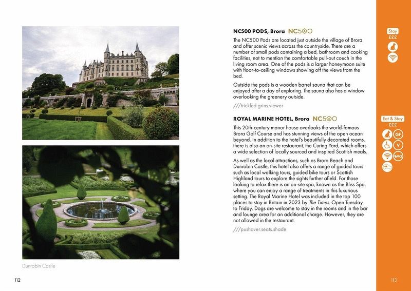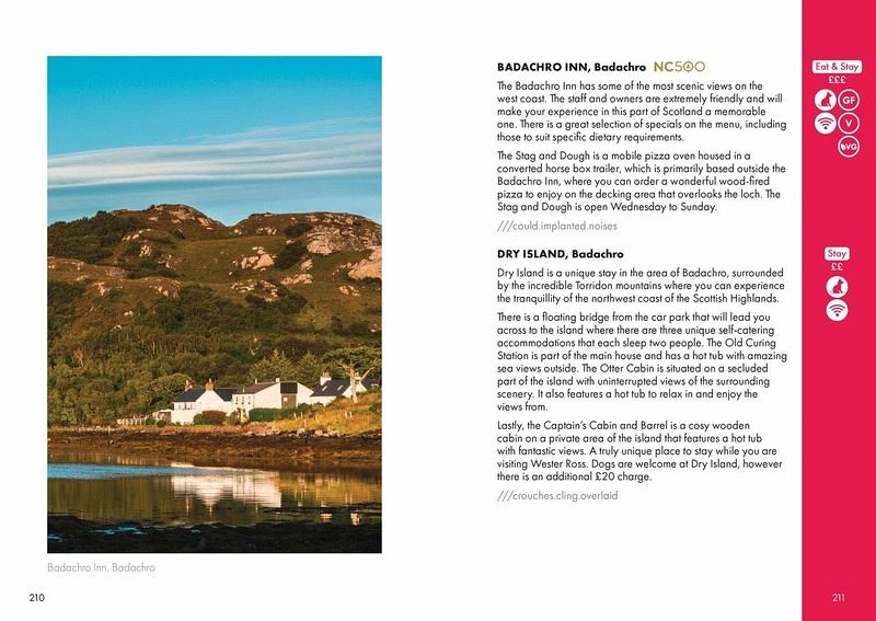 A guide to the best places to enjoy the local Scottish cuisine and where to rest for the night along the famous North Coast 500. Elemental, enchanting and inspiring, the NC500 is Scotland's most popular touring route, a stunning 500 mile loop around Northern Scotland. This unique guide makes sure that at every stage and stop of the way, you will find the most creative chefs, the best hotels, the cosiest pubs, the best local foods and the most acclaimed destinations. In this guide you'll find: ¿ Overview maps of the NC500 route, broken down into six regions ¿ Beautiful full-colour photos taken along the route ¿ what3words geocode system used to specify exact locations of places to eat and stay ¿ A guide to pricing at each of the venues ¿ Information on dietary options, wheelchair access, pet friendly spots, electric vehicle charing points, WiFi, and places with NC500 member perks Researched and written by travel bloggers, Campbell Kerr and Gemma Spence. The ultimate guide to where to eat and stay along Scotland's ultimate touring route.