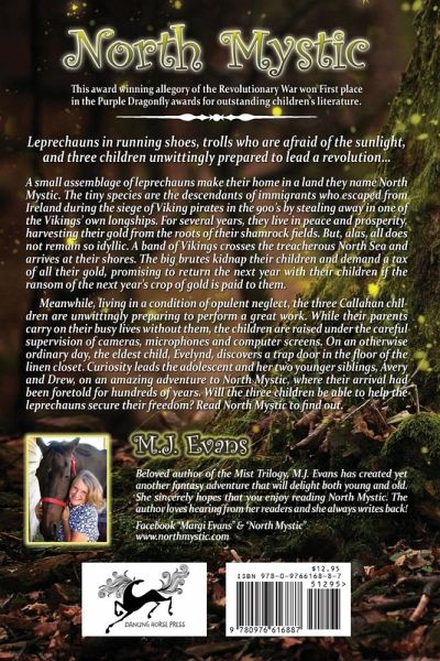 Leprechauns in running shoes, trolls who are afraid of the sunlight and three children unwittingly prepared to lead a revolution... A small assemblage of Leprechauns makes their home in a land they name North Mystic. The tiny species are the descendants of immigrants who escaped from Ireland during the siege of Viking pirates in the 900's by stealing away in one of the Vikings' own longships. For several years, they live in peace and prosperity, harvesting their gold from the roots of their shamrock fields. But, alas, all does not remain so idyllic. A band of Vikings crosses the treacherous North Sea and arrives at their shores. The big brutes kidnap their children and demand a tax of all their gold, promising to return the next year with their children if the ransom of the next year's crop of gold is paid to them. Meanwhile, living in a condition of opulent neglect, the three Callahan children are, unsuspectingly, preparing to perform a great work. While their parents carry on their busy lives without them, the children are raised under the careful supervision of cameras, microphones and computer screens. On an otherwise ordinary day, the eldest child, Evelynd, discovers a trap door in the floor of the linen closet. Curiosity leads the adolescent and her two younger siblings, Avery and Drew, on an amazing adventure to North Mystic where their arrival had been foretold for hundreds of years. Will the three children be able to help the Leprechauns secure their freedom? Read this award-winning fantasy to find out.