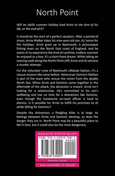 Will an idyllic summer holiday lead Arnie to the love of his life, or the end of it? It should be the start of a perfect vacation. After a period of stress, Arnie Walker takes his nine-year-old son, AJ, home for the holidays. Arnie grew up in Nyemouth, a picturesque fishing town on the North East coast of England, and he wants AJ to experience the kind of carefree, endless summer he enjoyed as a boy. It's a short-lived dream. While taking an evening walk along the North Point cliff, Arnie and AJ witness a murder attempt. For the volunteer crew of Nyemouth Lifeboat Station, it's a rescue mission like none before. Helmsman Dominic Melton is part of the team who rescue the victim from the deadly North Sea. When Arnie and Dominic come together in the aftermath of the attack, the attraction is instant. Arnie isn't looking for a relationship. He's committed to his son's wellbeing and has no time for a distraction like Dominic, even though the handsome ex-naval officer is hard to dismiss. Is it possible for Arnie to fulfill his promises to AJ while falling for Dominic? Despite the distraction, a fledgling killer is at large. As feelings between Arnie and Dominic develop, so does the danger they are in. North Point may be a beautiful place to fall in love, but it could also be the most dangerous.