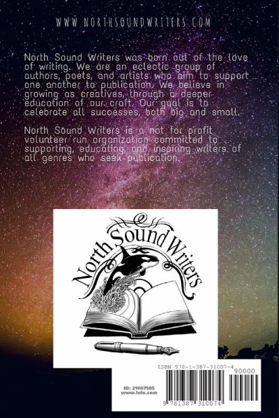 This book is a treasure of our first year as a writing organization. You will find poetry, short stories, essays on life, love, loss, and even a play. North Sound Writers was born out of the love of writing. We are an eclectic group of authors, poets, and artists who aim to support one another to publication. We believe in growing as creatives, through a deeper education of our craft. Our goal is to celebrate all successes, both big and small.