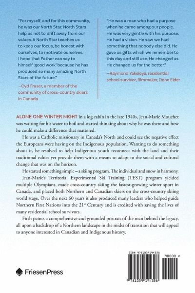 "He was a man who had a purpose when he came among our people. He was very gentle with his purpose. He had a vision. He saw we had something that nobody else did. He gave us gifts which we remember to this day and still use. He changed us. He changed us for the better." -Raymond Yakeleya, residential school survivor, filmmaker, Dene Elder Alone one winter night in a log cabin in the late 1940s, Jean-Marie Mouchet was waiting for his water to boil and started thinking about why he was there and how he could make a difference that mattered. He was a Catholic missionary in Canada's North and could see the negative effect the Europeans were having on the Indigenous population. Wanting to do something about it, he resolved to help Indigenous youth reconnect with the land and their traditional values yet provide them with a means to adapt to the social and cultural change that was on the horizon. He started something simple - a skiing program. The individual and snow in harmony. Jean-Marie's Territorial Experimental Ski Training (TEST) program yielded multiple Olympians, made cross-country skiing the fastest-growing winter sport in Canada, and placed both Northern and Canadian skiers on the cross-country skiing world stage. Over the next 60 years it also produced many leaders who helped guide Northern First Nations into the 21st Century and is credited with saving the lives of many residential school survivors. Firth paints a comprehensive and grounded portrait of the man behind the legacy, all upon a backdrop of a Northern landscape in the midst of transition that will appeal to anyone interested in Canadian and Indigenous history.