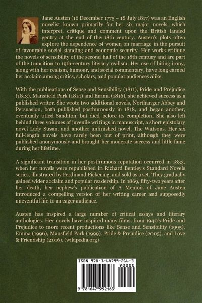 Northanger Abbey follows seventeen-year-old Gothic novel aficionado Catherine Morland and family friends Mr. and Mrs. Allen as they visit Bath, England. Catherine is in Bath for the first time. There she meets her friends such as Isabella Thorpe, and goes to balls. Catherine finds herself pursued by Isabella's brother, the rather rough-mannered, slovenly John Thorpe, and by her real love interest, Henry Tilney. She also becomes friends with Eleanor Tilney, Henry's younger sister. Henry captivates her with his view on novels and his knowledge of history and the world. General Tilney (Henry and Eleanor's father) invites Catherine to visit their estate, Northanger Abbey, which, from her reading of Ann Radcliffe's gothic novel The Mysteries of Udolpho, she expects to be dark, ancient and full of Gothic horrors and fantastical mystery. (wikipedia.org)