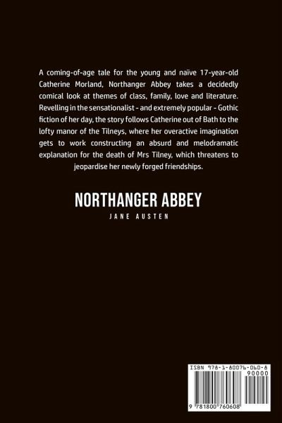 Do you want to read Northanger Abbey? If so then keep reading... A coming-of-age tale for the young and naïve 17-year-old Catherine Morland, Northanger Abbey takes a decidedly comical look at themes of class, family, love and literature. Revelling in the sensationalist - and extremely popular - Gothic fiction of her day, the story follows Catherine out of Bath to the lofty manor of the Tilneys, where her overactive imagination gets to work constructing an absurd and melodramatic explanation for the death of Mrs Tilney, which threatens to jeopardise her newly forged friendships. What are you waiting for Northanger Abbey is one click away, select the "Buy Now" button in the top right corner NOW!