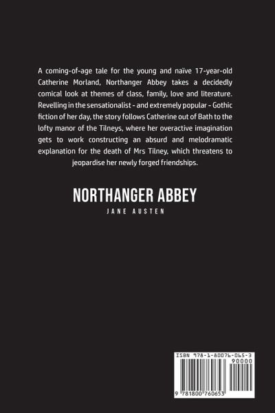 Do you want to read Northanger Abbey? If so then keep reading... A coming-of-age tale for the young and naïve 17-year-old Catherine Morland, Northanger Abbey takes a decidedly comical look at themes of class, family, love and literature. Revelling in the sensationalist - and extremely popular - Gothic fiction of her day, the story follows Catherine out of Bath to the lofty manor of the Tilneys, where her overactive imagination gets to work constructing an absurd and melodramatic explanation for the death of Mrs Tilney, which threatens to jeopardise her newly forged friendships. What are you waiting for Northanger Abbey is one click away, select the "Buy Now" button in the top right corner NOW!