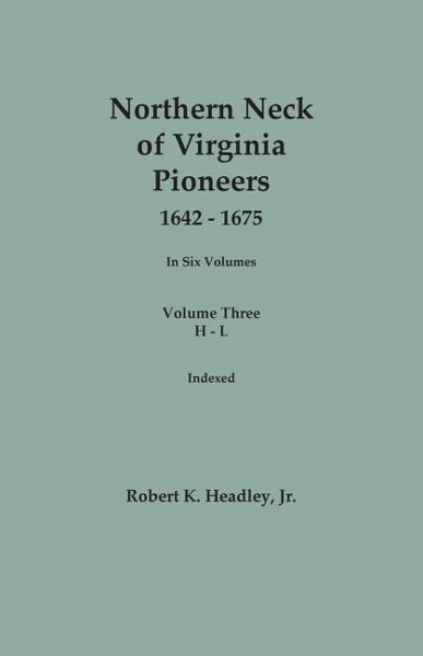 This is a genealogical dictionary of the earliest settlers of the Northern Neck of Virginia derived from a database of 74,893 records. Volume Three contains the sketches of persons for surnames beginning with the letter H through L