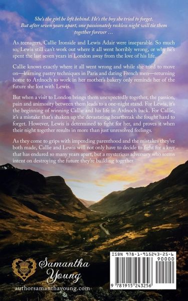 She's the girl he left behind. He's the boy she tried to forget. But after seven years apart, one passionately reckless night will tie them together forever ... As teenagers, Callie Ironside and Lewis Adair were inseparable. So much so, Lewis still can't work out where it all went horribly wrong, or why he's spent the last seven years in London away from the love of his life. Callie knows exactly where it all went wrong and while she tried to move on-learning pastry techniques in Paris and dating French men-returning home to Ardnoch to work in her mother's bakery only reminds her of the future she lost with Lewis. But when a visit to London brings them unexpectedly together, the passion, pain and animosity between them leads to a one-night stand. For Lewis, it's the beginning of winning Callie and his life in Ardnoch back. For Callie, it's a mistake that's shaken up the devastating heartbreak she fought hard to forget. However, Lewis is determined to fight for her, and proves it when their night together results in more than just unresolved feelings. As they come to grips with impending parenthood and the mistakes they've both made, Callie and Lewis will not only have to decide to fight for a love that has endured so many years apart, but a mysterious adversary who seems intent on destroying the future they're building together.