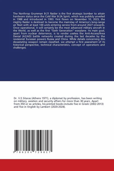 The Northrop Grumman B-21 Raider is the first strategic bomber to attain hardware status since the Cold War B-2A Spirit, which was publicly unveiled in 1988 and introduced in 1993. First flown on November 10, 2023, the mighty Raider is destined to become the mainstay of America's long-range air fleet with at least 100 units entering service from around 2027 onwards. Once operational, it will certainly be the most advanced military aircraft in the World, as well as the first "Sixth Generation" warplane. Its main goal, apart from nuclear deterrence, is to render useless the Anti-Access/Area Denial (A2/AD) battle networks created during the last decades by the revisionist Eurasian powers Russia and China. While details concerning this devastating weapon remain classified, we attempt a first assessment of its historical perspective, technical characteristics, concept of operations and challenges.
