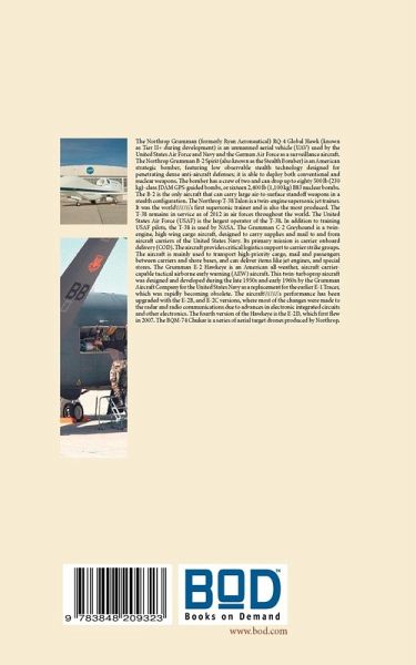 The Northrop Grumman (formerly Ryan Aeronautical) RQ-4 Global Hawk (known as Tier II+ during development) is an unmanned aerial vehicle (UAV) used by the United States Air Force and Navy and the German Air Force as a surveillance aircraft. The Northrop Grumman B-2 Spirit (also known as the Stealth Bomber) is an American strategic bomber, featuring low observable stealth technology designed for penetrating dense anti-aircraft defenses; it is able to deploy both conventional and nuclear weapons. The bomber has a crew of two and can drop up to eighty 500 lb (230 kg)-class JDAM GPS-guided bombs, or sixteen 2,400 lb (1,100 kg) B83 nuclear bombs. The B-2 is the only aircraft that can carry large air-to-surface standoff weapons in a stealth configuration. The Northrop T-38 Talon is a twin-engine supersonic jet trainer. It was the world\\\\\\\\\\\\\\\'s first supersonic trainer and is also the most produced. The T-38 remains in service as of 2012 in air forces throughout the world. The United States Air Force (USAF) is the largest operator of the T-38. In addition to training USAF pilots, the T-38 is used by NASA. The Grumman C-2 Greyhound is a twin-engine, high-wing cargo aircraft, designed to carry supplies and mail to and from aircraft carriers of the United States Navy. Its primary mission is carrier onboard delivery (COD). The aircraft provides critical logistics support to carrier strike groups. The aircraft is mainly used to transport high-priority cargo, mail and passengers between carriers and shore bases, and can deliver items like jet engines, and special stores. The Grumman E-2 Hawkeye is an American all-weather, aircraft carrier-capable tactical airborne early warning (AEW) aircraft. This twin-turboprop aircraft was designed and developed during the late 1950s and early 1960s by the Grumman Aircraft Company for the United States Navy as a replacement for the earlier E-1 Tracer, which was rapidly becoming obsolete. The aircraft\\\\\\\\\\\\\\\'s performance has been upgraded with the E-2B, and E-2C versions, where most of the changes were made to the radar and radio communications due to advances in electronic integrated circuits and other electronics. The fourth version of the Hawkeye is the E-2D, which first flew in 2007. The BQM-74 Chukar is a series of aerial target drones produced by Northrop.