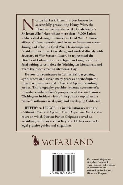 Norton Parker Chipman is best known for successfully prosecuting Henry Wirz, the infamous commander of the Confederacy's Andersonville Prison where more than 13,000 Union soldiers died during the American Civil War. A Union officer, Chipman participated in many important events during and after the Civil War. He accompanied President Lincoln to Gettysburg and worked directly with Secretary of War Stanton. Later, he represented the District of Columbia as its delegate to Congress, led the fund-raising to complete the Washington Monument and wrote the order creating Memorial Day. He rose to prominence in California's burgeoning agribusiness and served many years as a state Supreme Court commissioner and a Court of Appeal presiding justice. This biography provides intimate accounts of a wounded combat officer's perspective of the Civil War, a Washington insider's view of the postwar capital and a veteran's influence in shaping and developing California.