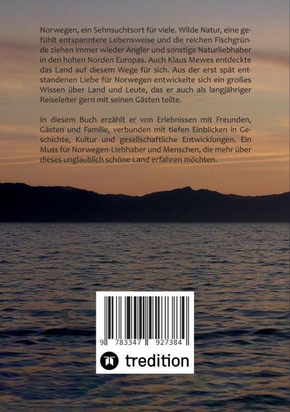 Norwegen, ein Sehnsuchtsort für viele. Wilde Natur, eine gefühlt entspanntere Lebensweise und die reichen Fischgründe ziehen immerwieder Angler und sonstige Naturliebhaber in den hohen Norden Europas. Auch Klaus Mewes entdeckte das Land auf diesem Wege für sich. Aus der erst spät entstandenen Liebe für Norwegen entwickelte sich ein großes Wissen über Land und Leute, das er auch als langjähriger Reiseleiter gern mit seinen Gästen teilte.In diesem Buch erzählt er von Erlebnissen mit Freunden, Gästen und Familie, verbunden mit tiefen Einblicken in Geschichte, Kultur und gesellschaftliche Entwicklungen. Ein Muss für Norwegen-Liebhaber und Menschen, die mehr über dieses unglaublich schöne Land erfahren möchten.