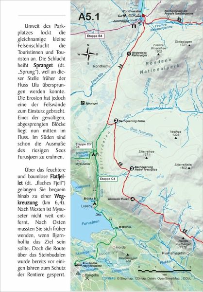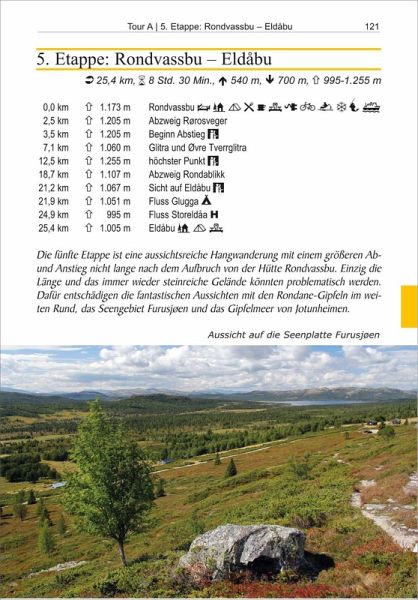 Das Felsmassiv der Rondane-Berge ragt mächtig über die weite und flache Berghochebene hinaus. Im Süden finden sich Bergwälder und blumenreiche Bergweiden mit runden Berggipfeln. Vor allem im Norden und im Osten bestimmen tiefe Täler und steile Felswände das Bild. In dieser kargen und steinigen Berglandschaft leben wilde Rentiere schon seit Tausenden von Jahren. Im gesamten Gebiet lassen sich Reste alter Fanganlagen und Siedlungen entdecken. 1962 wurde Rondane als erster Nationalpark Norwegens eröffnet und stellt heute einen der letzten Außenposten für die wilden Rentiere dar. Im Park gibt es ein gut ausgebautes Netz von markierten Wanderwegen und Hütten, die eine Vielzahl an Wandermöglichkeiten eröffnen, angefangen von einfachen Tagestouren bis hin zu mehrtägigen Bergwanderungen. Und wer einen Gipfel erklimmen möchte: Ganze neun in Rondane erheben sich mehr als 2.000 m in die Höhe und erfordern nur ein bisschen Ausdauer. Die drei in diesem Buch vorgestellten Rundtouren (6 bis 7 Tage) bieten einen umfangreichen Einblick in diese grandiose Berglandschaft.