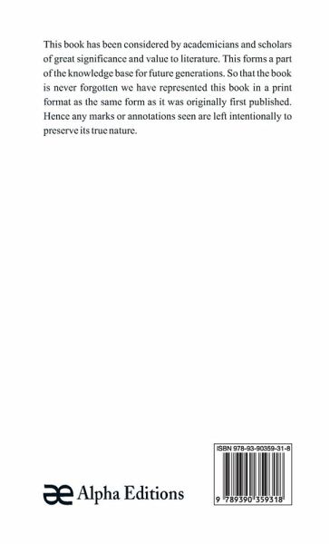 This book has been considered by academicians and scholars of great significance and value to literature. This forms a part of the knowledge base for future generations. So that the book is never forgotten we have represented this book in a print format as the same form as it was originally first published. Hence any marks or annotations seen are left intentionally to preserve its true nature.