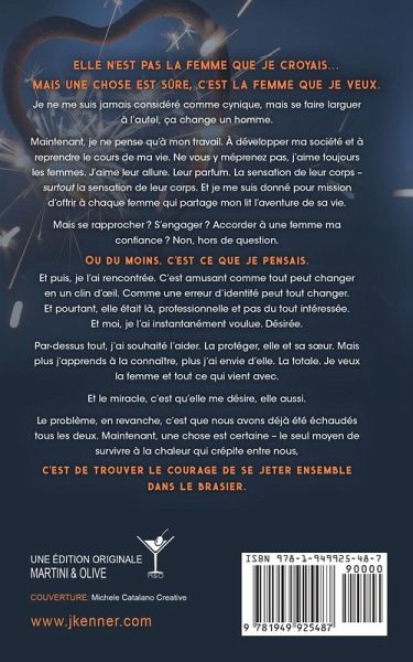 Elle n'est pas la femme que je croyais… mais une chose est sûre, c'est la femme que je veux. Je ne me suis jamais considéré comme cynique, mais se faire larguer à l'autel, ça change un homme. Maintenant, je ne pense qu'à mon travail. À développer ma société et à reprendre le cours de ma vie. Ne vous y méprenez pas, j'aime toujours les femmes. J'aime leur allure. Leur parfum. La sensation de leur corps - surtout la sensation de leur corps. Et je me suis donné pour mission d'offrir à chaque femme qui partage mon lit l'aventure de sa vie. Mais se rapprocher ? S'engager ? Accorder à une femme ma confiance ? Non, hors de question. Ou du moins, c'est ce que je pensais. Et puis, je l'ai rencontrée. C'est amusant comme tout peut changer en un clin d'œil. Comme une erreur d'identité peut tout changer. Et pourtant, elle était là, professionnelle et pas du tout intéressée. Et moi, je l'ai instantanément voulue. Désirée. Par-dessus tout, j'ai souhaité l'aider. La protéger, elle et sa sœur. Mais plus j'apprends à la connaître, plus j'ai envie d'elle. La totale. Je veux la femme et tout ce qui vient avec. Et le miracle, c'est qu'elle me désire, elle aussi. Le problème, en revanche, c'est que nous avons déjà été échaudés tous les deux. Maintenant, une chose est certaine - le seul moyen de survivre à la chaleur qui crépite entre nous, c'est de trouver le courage de se jeter ensemble dans le brasier.