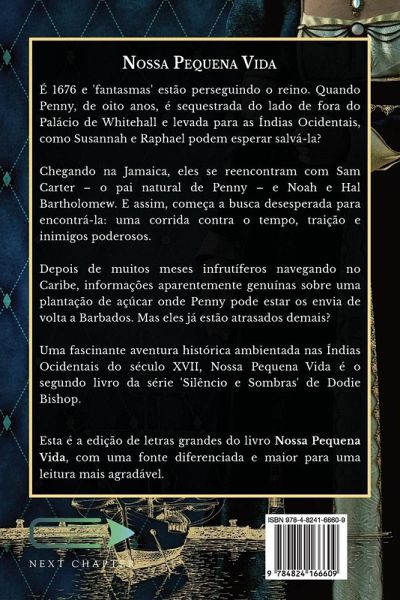 É 1676 e 'fantasmas' estão perseguindo o reino. Quando Penny, de oito anos, é sequestrada do lado de fora do Palácio de Whitehall e levada para as Índias Ocidentais, como Susannah e Raphael podem esperar salvá-la? Chegando na Jamaica, eles se reencontram com Sam Carter - o pai natural de Penny - e Noah e Hal Bartholomew. E assim, começa a busca desesperada para encontrá-la: uma corrida contra o tempo, traição e inimigos poderosos. Depois de muitos meses infrutíferos navegando no Caribe, informações aparentemente genuínas sobre uma plantação de açúcar onde Penny pode estar os envia de volta a Barbados. Mas eles já estão atrasados demais? Uma fascinante aventura histórica ambientada nas Índias Ocidentais do século XVII, Nossa Pequena Vida é o segundo livro da série 'Silêncio e Sombras' de Dodie Bishop. Esta é a edição de letras grandes do livro Nossa Pequena Vida, com uma fonte diferenciada e maior para uma leitura mais agradável.