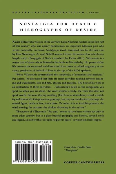 Nostalgia for Death is the sole book of Villaurrutia, who was one of the few openly homosexual Latin American writers and one of Mexico's most important authors of the early twentieth century. "The latest of Eliot Weinberger's brilliant translations of Latin American poets brings to English the major volume of an impeccable Mexican modernist."--Booklist
