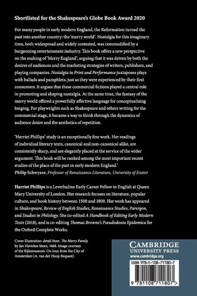 Harriet Phillips is a Leverhulme Early Career Fellow in English at Queen Mary University of London. Her research focuses on literature, popular culture and book history between 1500 and 1800. Her work has appeared in Shakespeare, Review of English Studies, Renaissance Studies, Parergon and Studies in Philology. She co-edited A Handbook of Editing Early Modern Texts (2018), and is co-editing Thomas Browne's Pseudodoxia Epidemica (forthcoming).