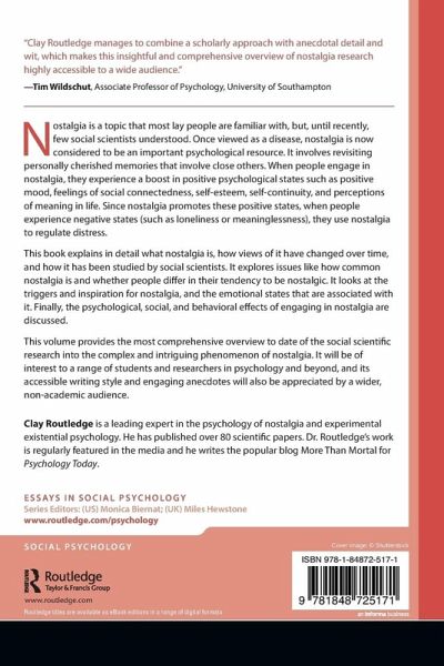 This volume provides the most comprehensive overview to date of the social scientific research into the complex and intriguing phenomenon of nostalgia. It will be of interest to a range of students and researchers in psychology and beyond, and its accessible writing style and engaging anecdotes will also be appreciated by a wider, non-academic audience.