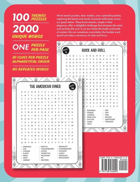 100 Classic 1950s Themed Wordfind Activity Puzzles. Take a Trip Down Memory Lane and Enjoy The Good Old Days with this 2000 Decade Defining Wordsearch Book Goodness Gracious Great Balls of Fire! Take a Fun Trip Down Memory Lane with this beautifully hand crafted themed Word Search Activity Puzzles. Word search puzzles, dear readers, are a splendid pastime, capturing the hearts and minds of puzzle enthusiasts across our great nation. These brain-teasers, simple in their elegance, offer a delightful challenge that sharpens the mind and enriches the soul. In an era where the hustle and bustle of modern life can sometimes overwhelm, the humble word search provides a sanctuary of calm and focus. ¿ 100 Fun 1950s Themed Puzzles with Solutions ¿ Over 2000 Words ¿ 20 Words in each Word Find Puzzle ¿ Alphabetical Order ¿ 8.5 x 11 Perfect Size ¿ Beautifully Designed Cover and Interior ¿ Includes FREE Bonus Goodies